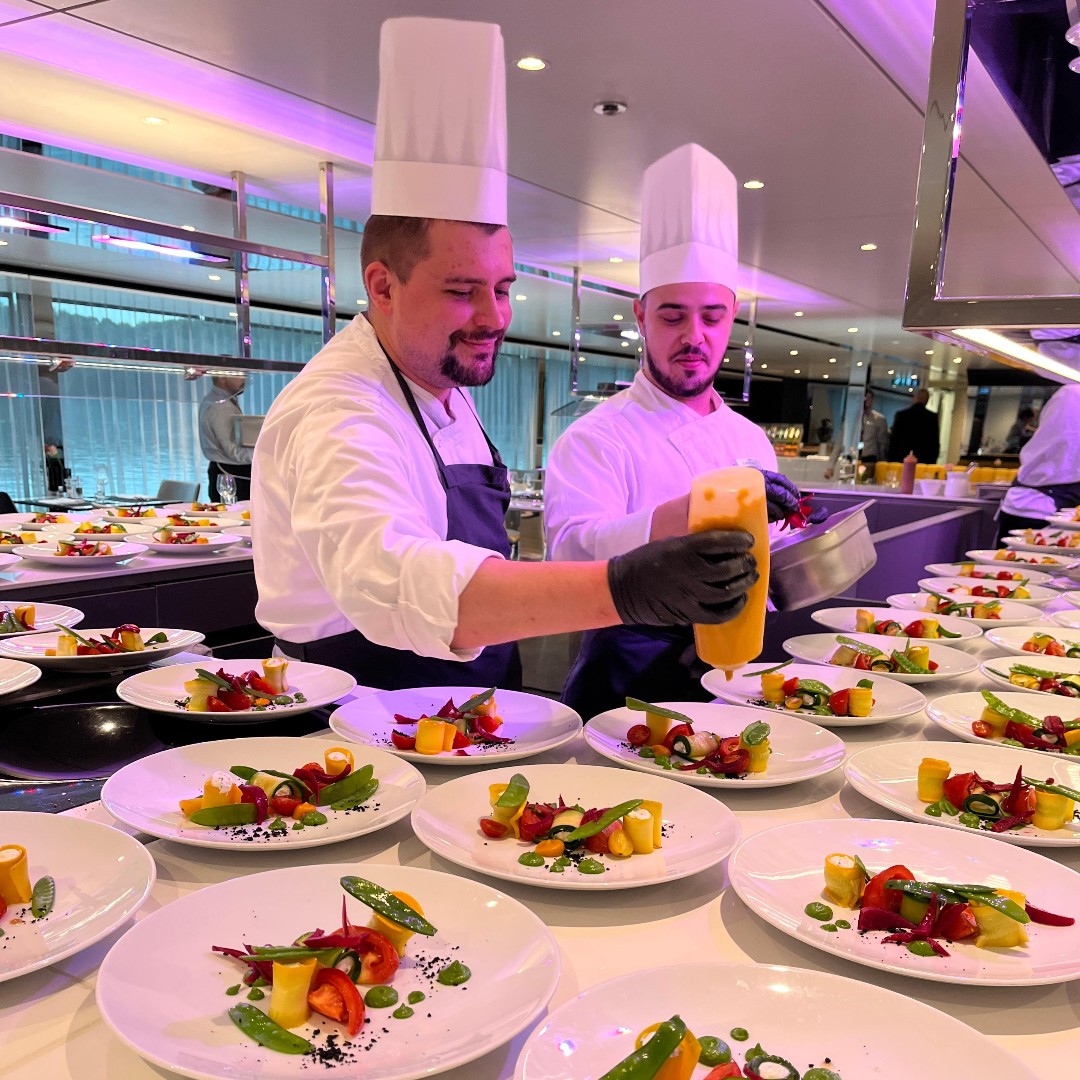 Feel on top of the world as you unwind on expansive lounge decks, soak in the infinity pool, or drift into relaxation in the jacuzzis. Surrounded by sweeping ocean views, every moment at sea is infused with elegance, freedom, and pure indulgence.